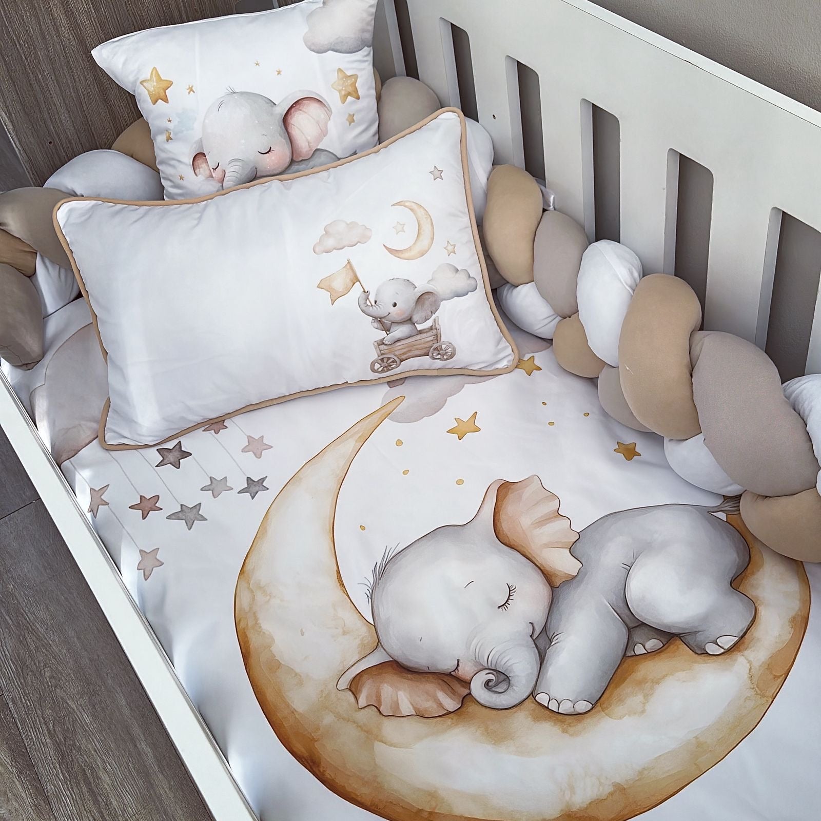 The Standard Set: Standard Duvet Cover & Inner (80 x 110cm) | 2,5m Braided Bumper | Cot Pillow Cover & Inner | Scatter Cover & Inner | Name Pillow Cover & Inner | White Fitted Sheet