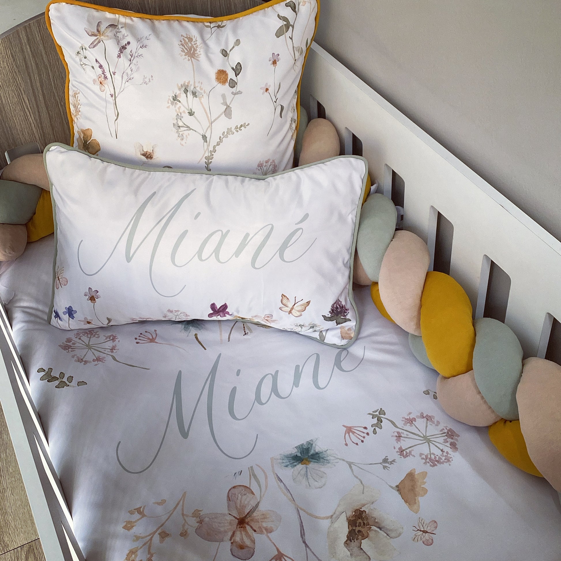 The Standard Set: Standard Duvet Cover & Inner (80 x 110cm) | 2,5m Braided Bumper | Cot Pillow Cover & Inner | Scatter Cover & Inner | Name Pillow Cover & Inner | White Fitted Sheet