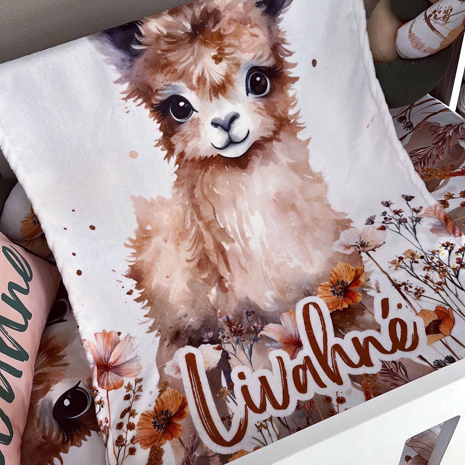 The Co-Sleeper Cot Set: 2 x Fitted Sheets (1 x Plain & 1 x Printed) | Blanket 70 x 100cm | Cot Pillow Cover 7 Inner | Small Name Pillow Cover & Inner