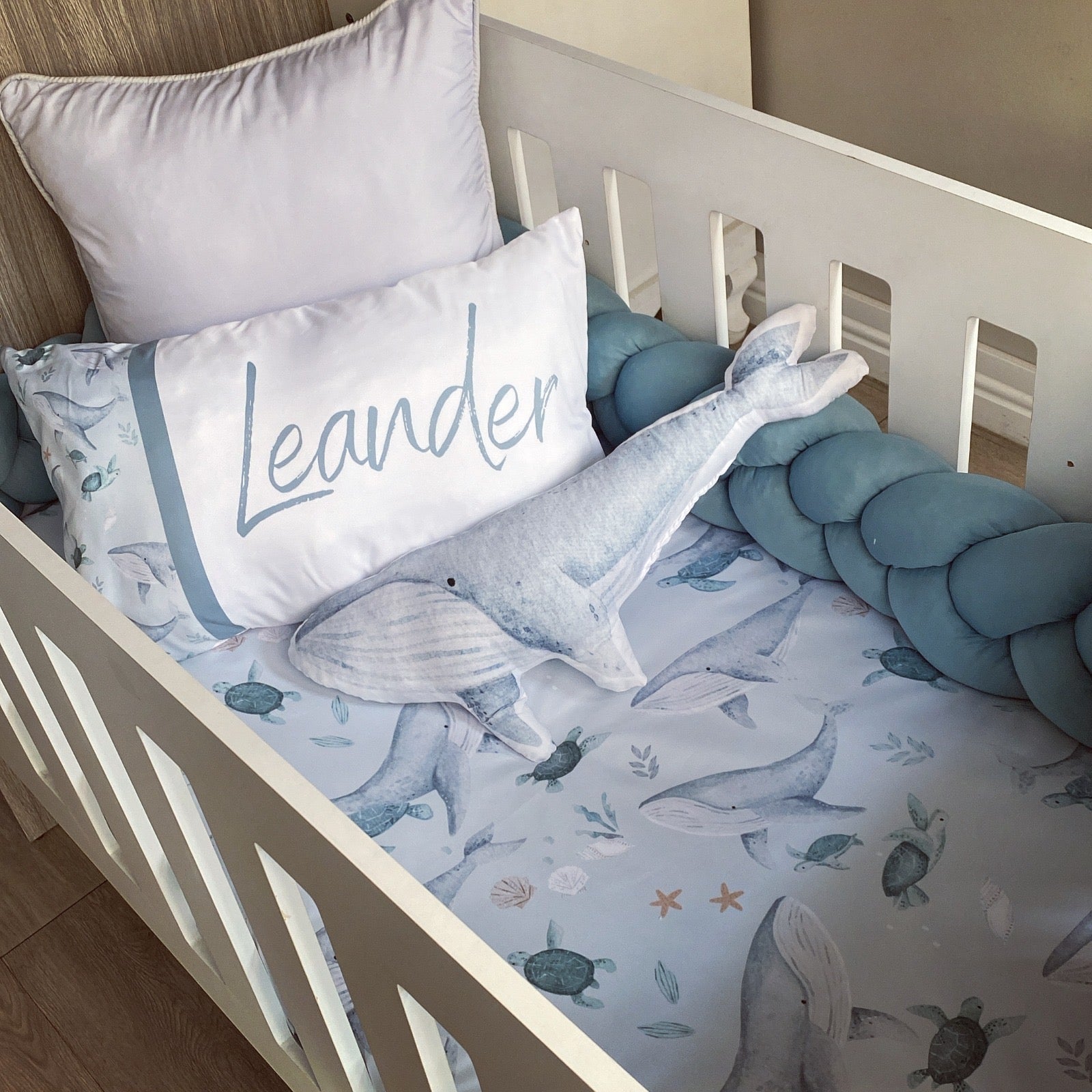 The Standard Set: Standard Duvet Cover & Inner (80 x 110cm) | 2,5m Braided Bumper | Cot Pillow Cover & Inner | Scatter Cover & Inner | Name Pillow Cover & Inner | White Fitted Sheet
