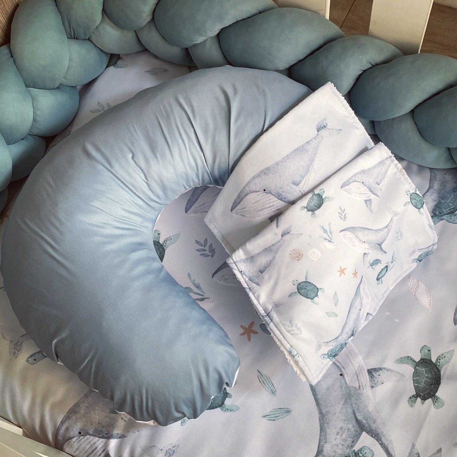 The Starter Set: Standard Duvet Cover & Inner (80 x 110cm) | 2,5m Braided Bumper | Cot Pillow Cover & Inner | White Fitted Sheet