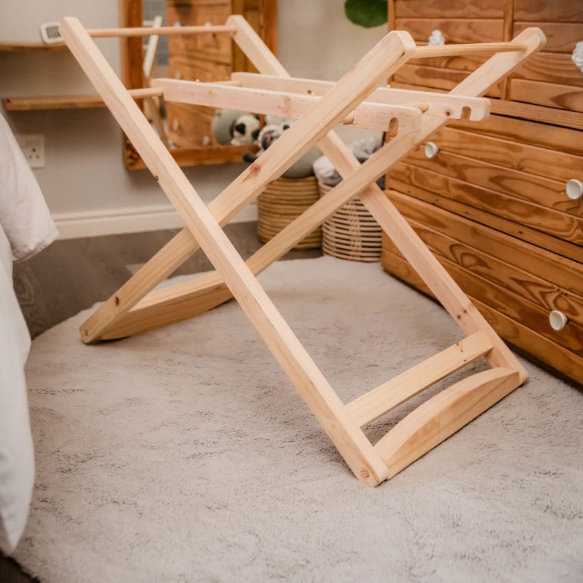 Bedside Combo: Moses basket | Mattress | Fitted sheet | Waterproof sheet | Basket Liner | Wooden stand | Rocking Feet