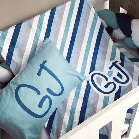 Cot Bedding - Blue and Aqua Stripe Set 01