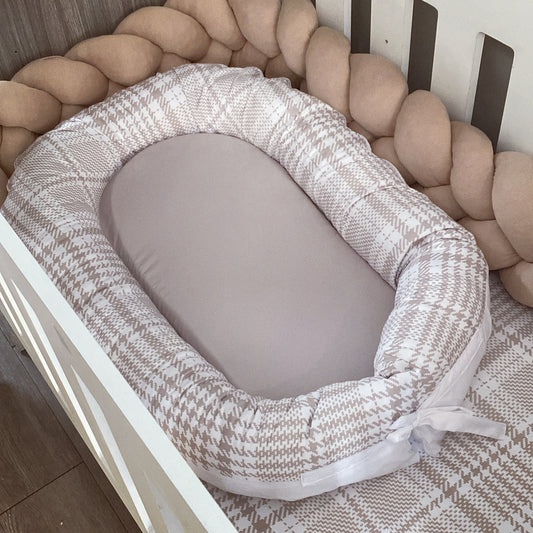 Cot Bedding - Stone Gingham Set 01