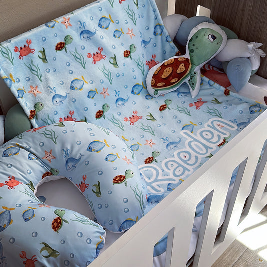 Cot Bedding - Blue Mustard Dinosaur Set 02