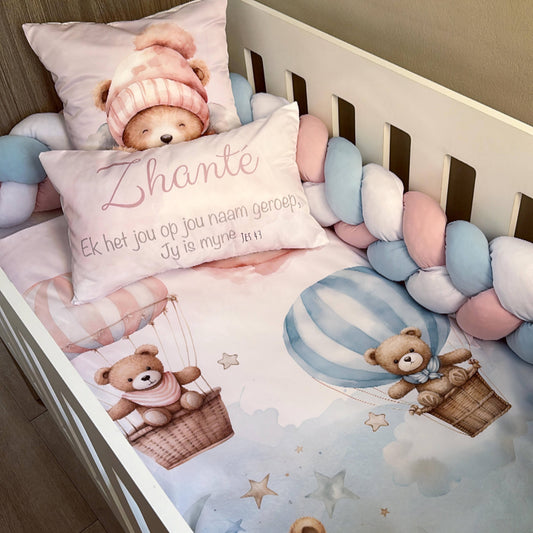 Cot Bedding - Blue Pink Twin Bear Set 01