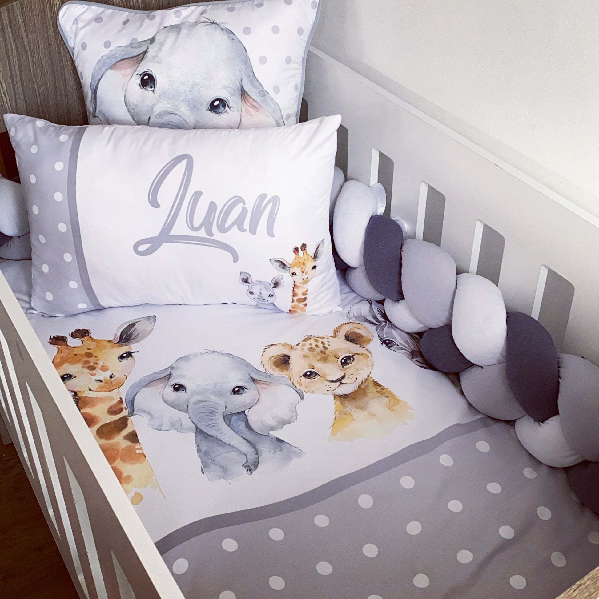 The Standard Set: Standard Duvet Cover & Inner (80 x 110cm) | 2,5m Braided Bumper | Cot Pillow Cover & Inner | Scatter Cover & Inner | Name Pillow Cover & Inner | White Fitted Sheet