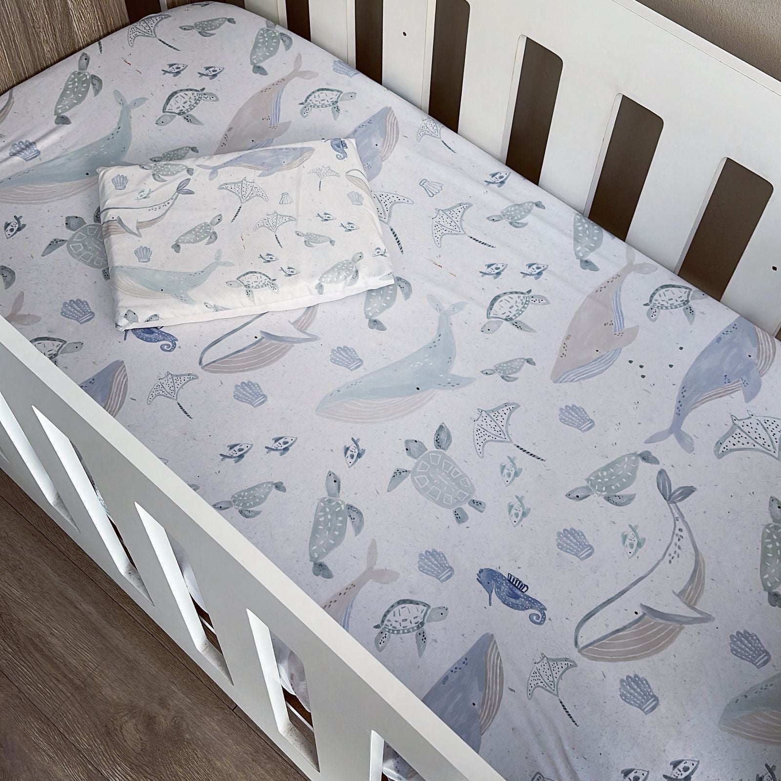 The Standard Set: Standard Duvet Cover & Inner (80 x 110cm) | 2,5m Braided Bumper | Cot Pillow Cover & Inner | Scatter Cover & Inner | Name Pillow Cover & Inner | White Fitted Sheet