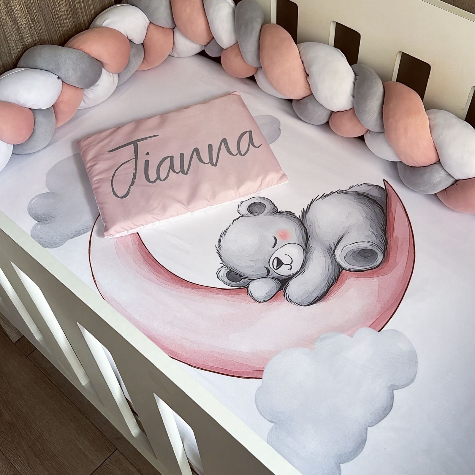 The Standard Set: Standard Duvet Cover & Inner (80 x 110cm) | 2,5m Braided Bumper | Cot Pillow Cover & Inner | Scatter Cover & Inner | Name Pillow Cover & Inner | White Fitted Sheet
