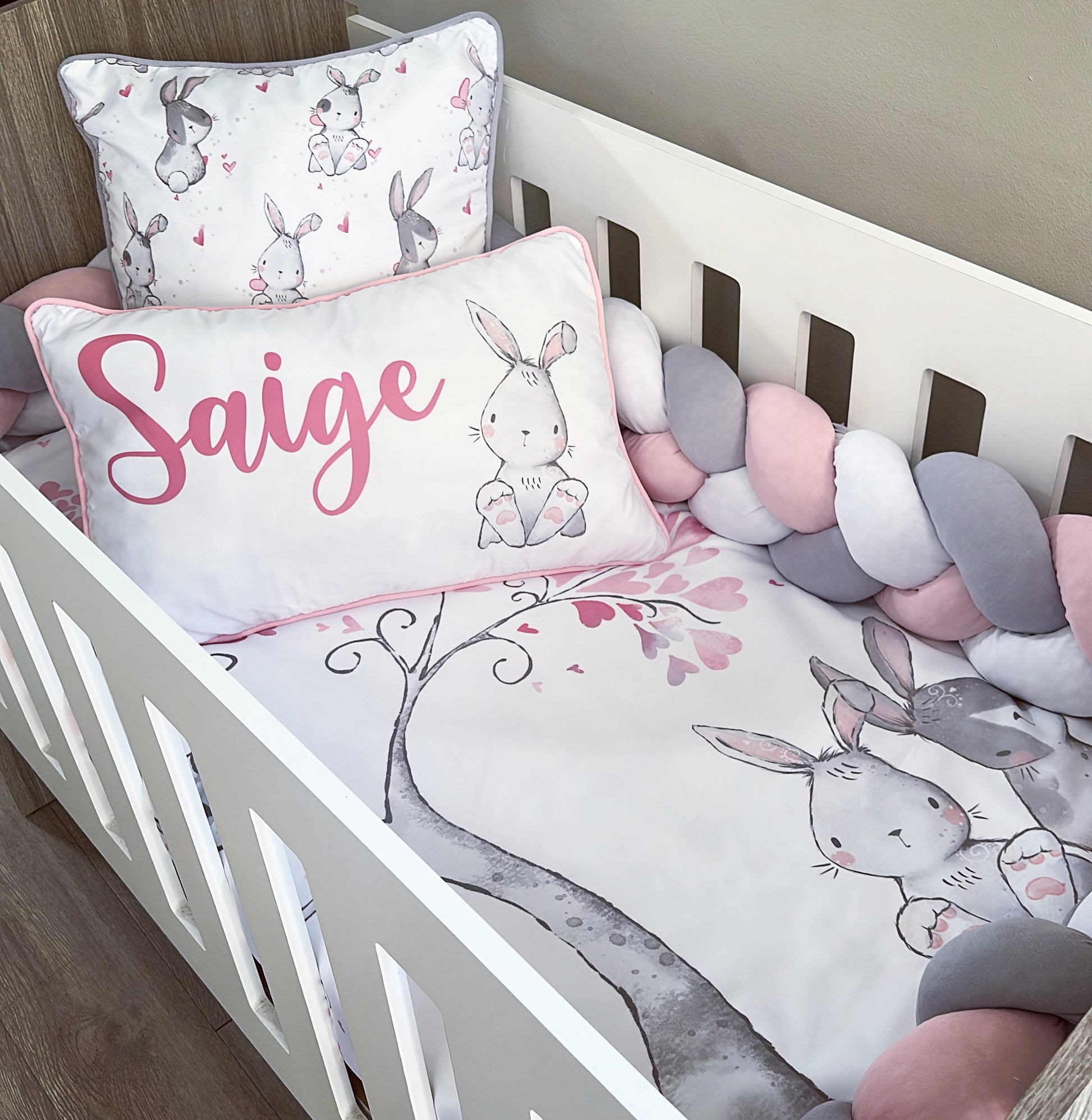 The Standard Set: Standard Duvet Cover & Inner (80 x 110cm) | 2,5m Braided Bumper | Cot Pillow Cover & Inner | Scatter Cover & Inner | Name Pillow Cover & Inner | White Fitted Sheet
