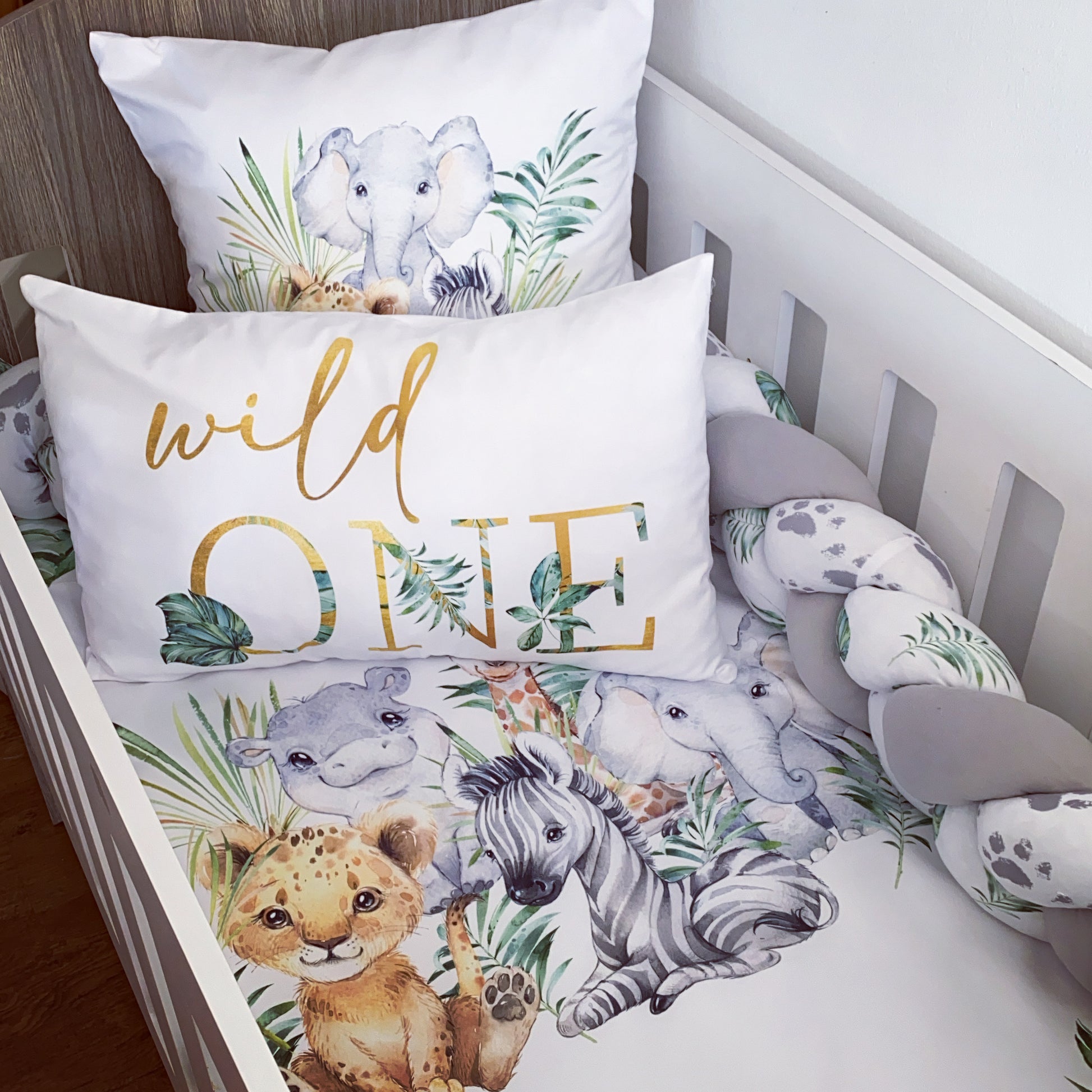 The Standard Set: Standard Duvet Cover & Inner (80 x 110cm) | 2,5m Braided Bumper | Cot Pillow Cover & Inner | Scatter Cover & Inner | Name Pillow Cover & Inner | White Fitted Sheet